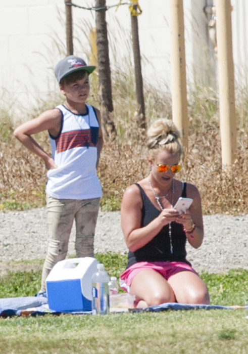 Com direito a lanche e toalha estendida na grama para poder assistir a partida, Spears se divertiu e ficou babando nos filhos.