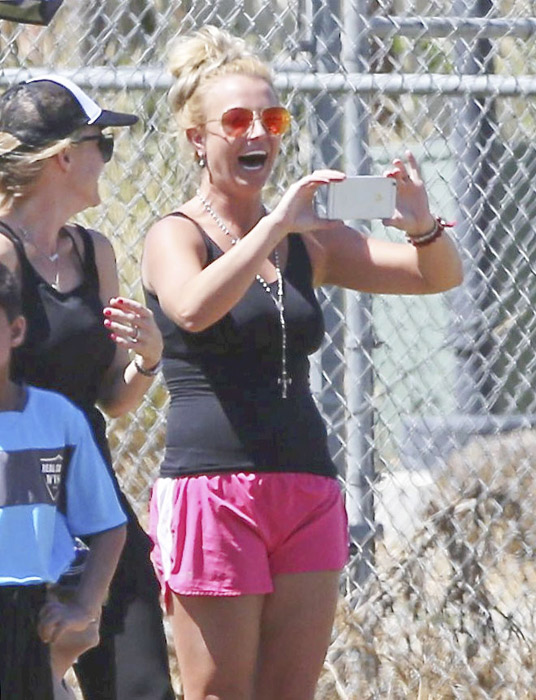 Enquanto as crianças jogavam futebol, Britney fez questão de registrar cada momento, tirando várias fotos e filmando os seus meninos.